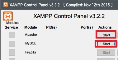 ②「Apache」の左にある「Start」ボタンをクリックします。